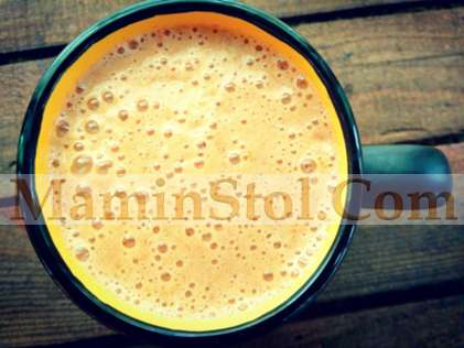 Наливаем сыворотку в небольшую кастрюльку и туда же отправляем вымытое и порезанное крупными кусочками яблоко со шкуркой (без семечек). При помощи погружного блендера превращаем яблоко с сывороткой в однородное пюре.