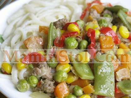 Когда овощи почти готовы, добавляем к ним хорошо промытую чечевицу и ещё 2 стакана воды, накрываем крышкой и тушим до готовности, помешивая.